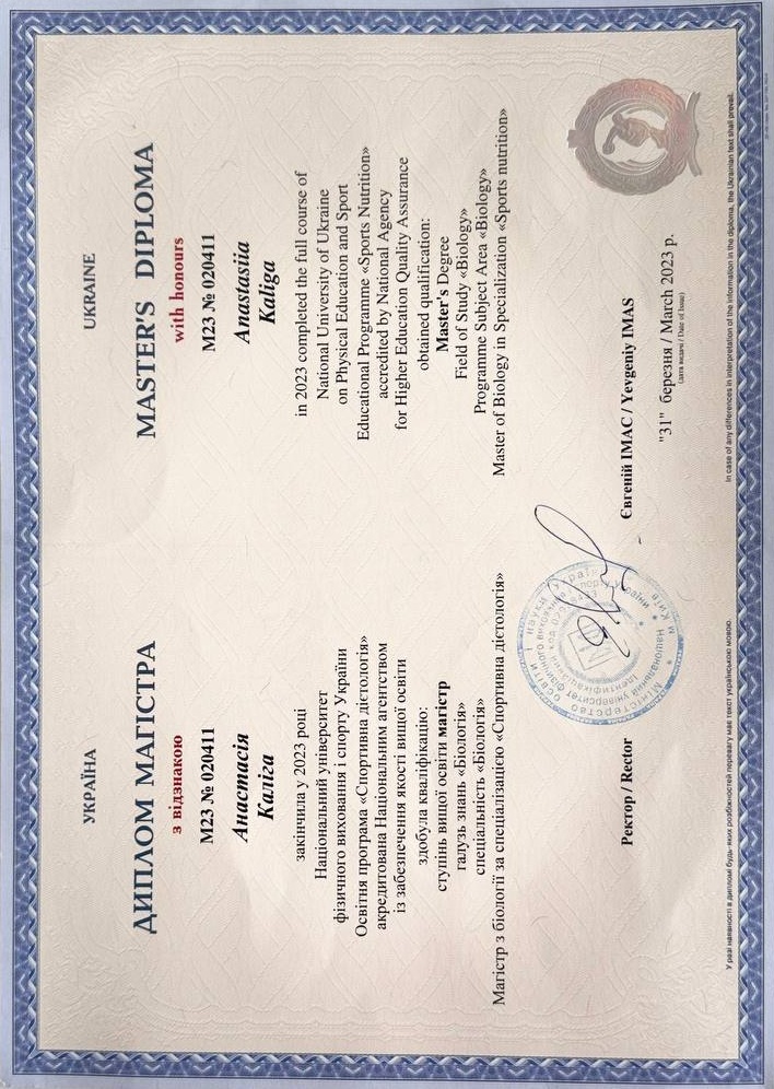 СПЕЦІАЛІСТ ПО ЗДОРОВОМУ ХАРЧУВАННЮ - АНАСТАСІЯ КАЛІГА