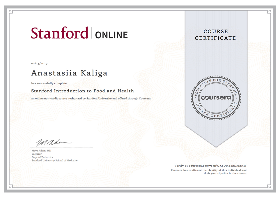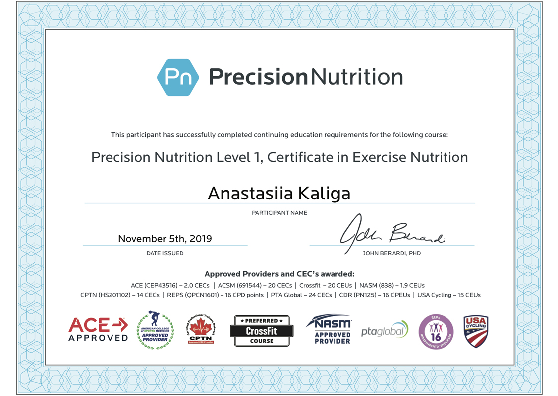CERTIFIED NUTRITION SPECIALIST - ANASTASIIA KALIGA